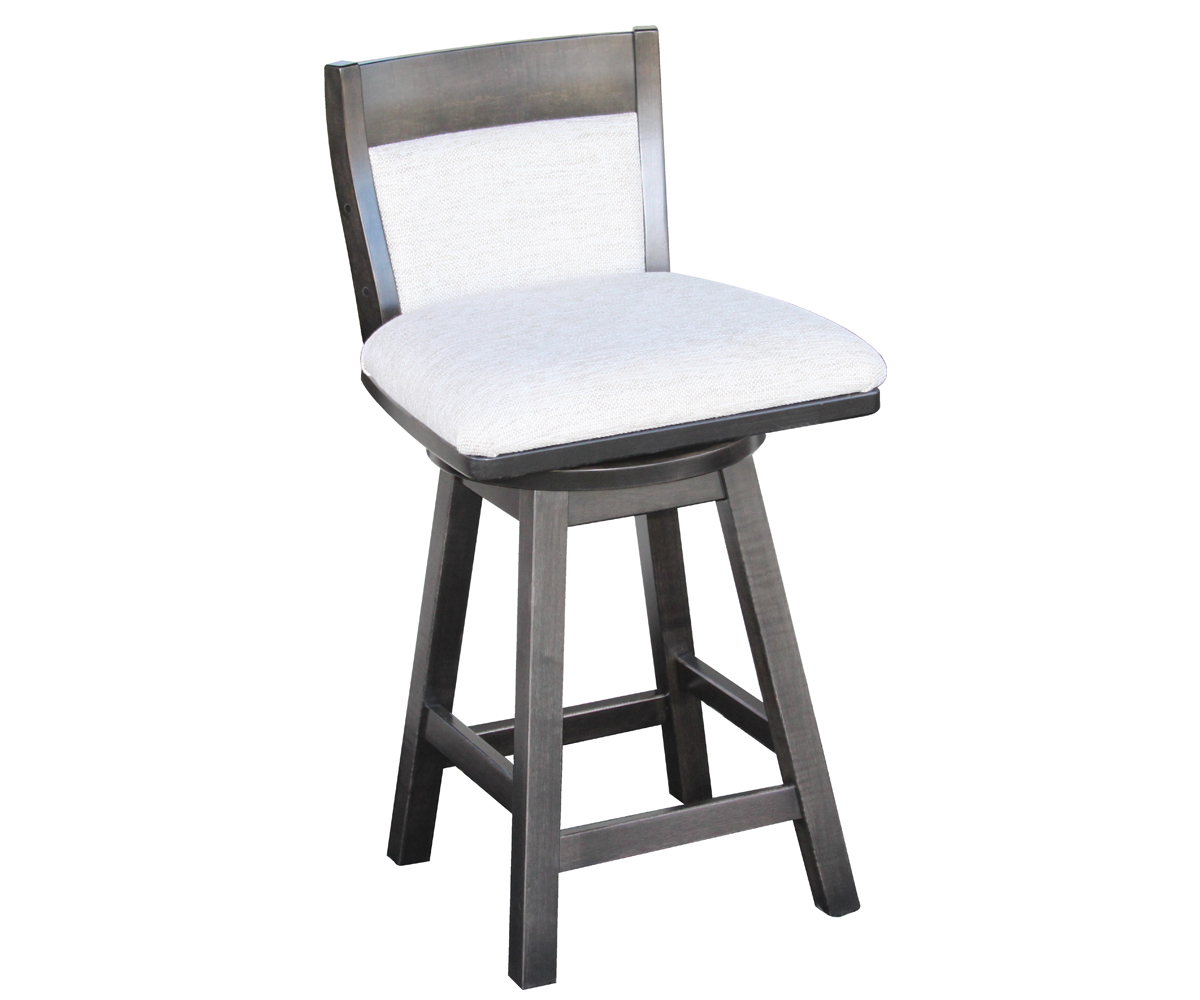 Features: Swivel seat Cushioned seat and back Fabric or leather can be used Also available in a bar height