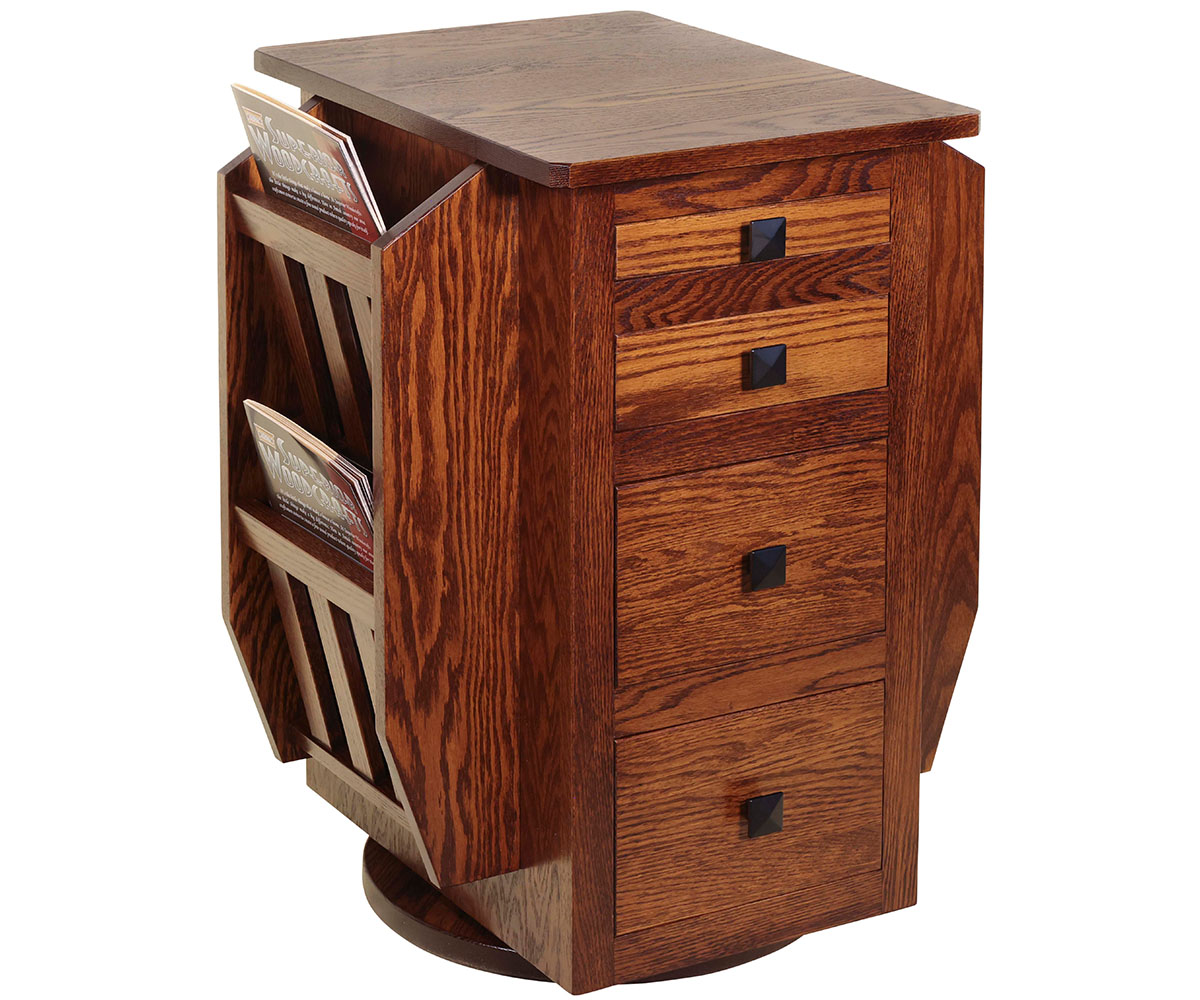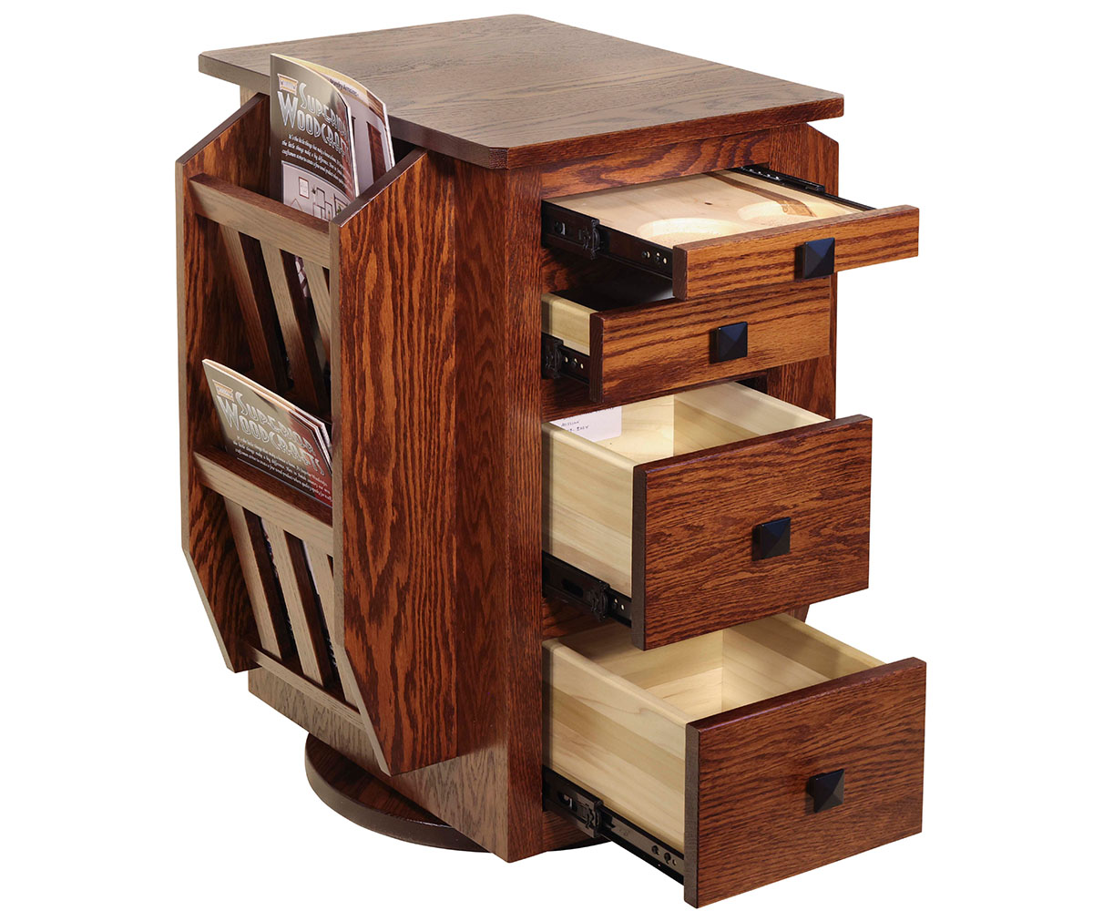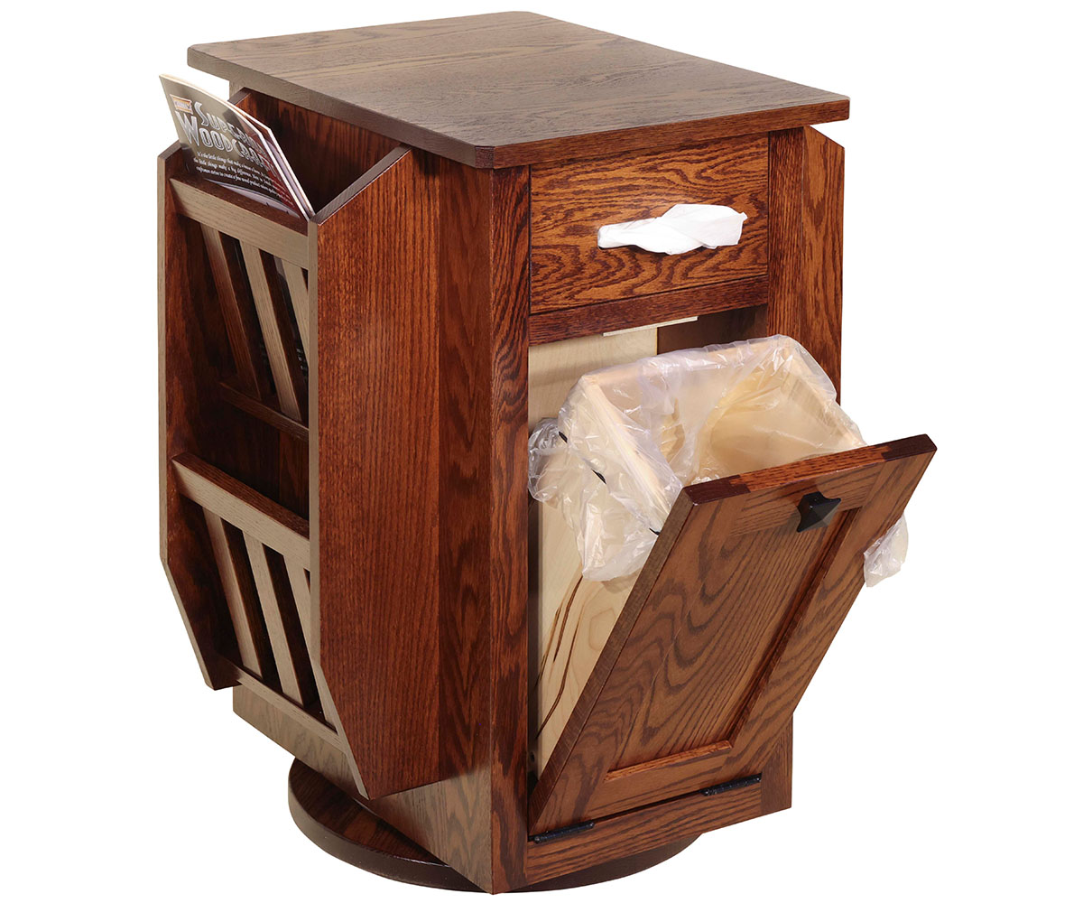 Dimensions: 21¼”W x 22″D x 27½”H Shown With: Wood: Oak Features: • Dovetailed drawers • Pull out cupholder • Magazine racks • Tissue holder • Pull out trash bin Item Code: M010946