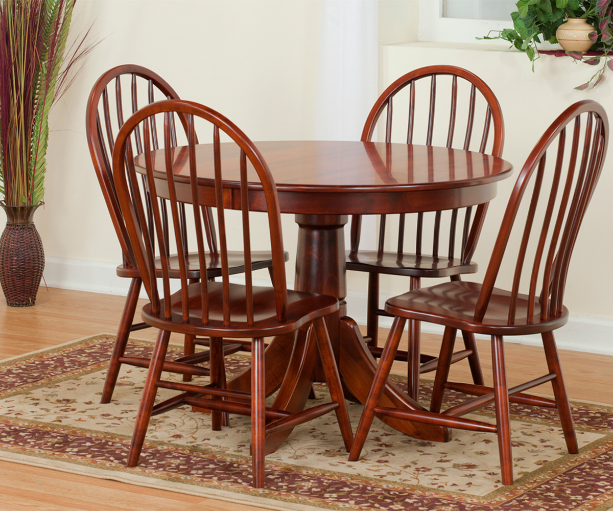 Table Shown With: Wood: Brown Maple Stain: OCS-113 Shape: Round Edge: ⅛” Eased Chair Shown With: Wood: Brown Maple Stain: OCS-113 This Collection Includes: • Millcreek Round Table • Millcreek Chair • Millcreek Side Board (not shown)