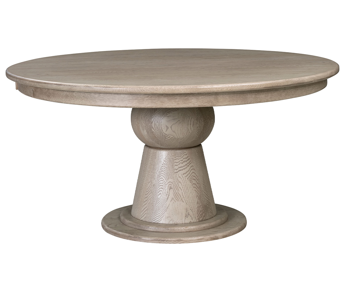 Dimensions: 54″ Round Shown With: Wood: Rustic White Oak Stain: HF-80 Shape: Round Edge: Bullnose Features: • Seats 4 • 1¼” Thick Top Options: • Other Edge Options Available Item Code: MO-54-0L