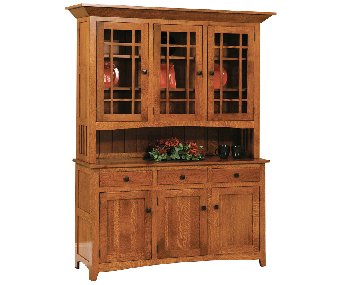 Buffet Dimensions: 62½”W x 19¼”D x 35″H Hutch Dimensions: 66½”W x 16¼”D x 48″H Shown With: Wood: QSWO Stain: OCS-104 Hardware: SQ Black Knob Options: • Shiplap Back (shown) Item Codes: Buffet: RA-41 Hutch: RA-44